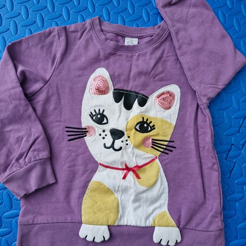 Lindexin kissa collegepaita koossa 110. Tosi vähän käytetty ja vielä ihanan pehmeä.