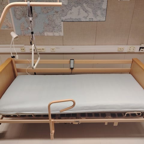 Sairaalasänky joka toimii sähköllä, nosteetavat laidat ja pää ja jalkaosa. Patja mukana joka on siisti.