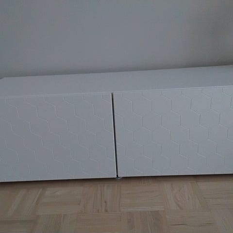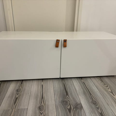 Hyväkuntoinen valkea IKEAn Bestå kaappi kahdella laatikolla. Käytetty tv-tasona.