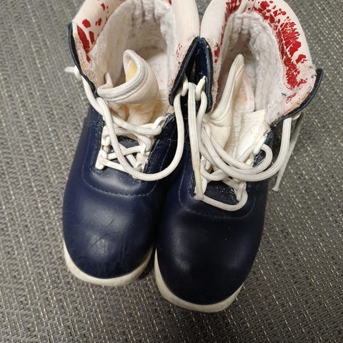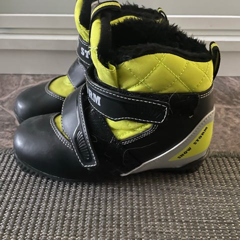 Snow Storm lasten hiihtomonot, koko 30. Väriltään musta-keltainen, heijastavin harmaan sävyin. Tarrakiinnitys kahdella remmillä,siistit tarrat. Karvavuori sisäpuolella.