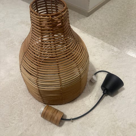 Myydään casa Stockmann merkkinen, rottinkinen, kattolampun varjostin. Korkeus 38 cm. Halkaisija keskeltä 30 cm. Ala ja yläosasta 12 cm.
