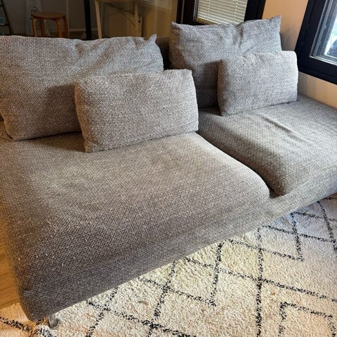 Myydään Ikea söderhamn sohva halvalla pois muuton tieltä. Ostettu -21 ja siitä lähtien ollut koirataloudessa, eli koirankarvoja ja käytönjälkiä löytyy. Irrotettavat päälliset kuitenkin helpottavat puhtaanapitoa. Pelkkä nouto Pohjois-Haagasta.