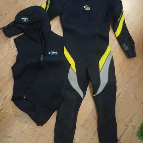 Aqualung Dive 7 mm märkäpuku naisten mallia, koko M. Materiaali on 7 mm paksua neopreenia (high density), joka on suunniteltu sukellukseen ja kylmempiin vesiolosuhteisiin. Mukana erillinen samaa sarjaa oleva huppu koko M. Sopii esimerkiksi laitesukellukseen, snorklaukseen tai muuhun vesiurheiluun viileissä olosuhteissa. Myydään muuttuneen toimintakyvyn vuoksi. Ollut varastoituna pari vuotta. Vain nouto Nokialta! Noutaessa pukua saa sovittaa.