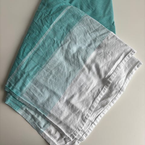 Myydään kylpypyyhe . Koko 70*135 cm, väri : turkoosi , valkoinen