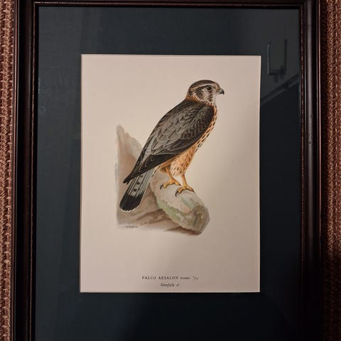 Aito kivipainotyö teoksesta Wright Svenska Fåglar .Viistetty Passerpartout, lasi. Koko 33x45 cm