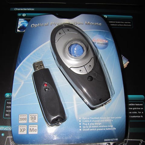 Kätevä laser esitysohjain, jossa on poikkeuksellisesti myös ns. ohjauspallo (trackball) jolla voi siis ohjata tietokoneen hiiren osoitinta!