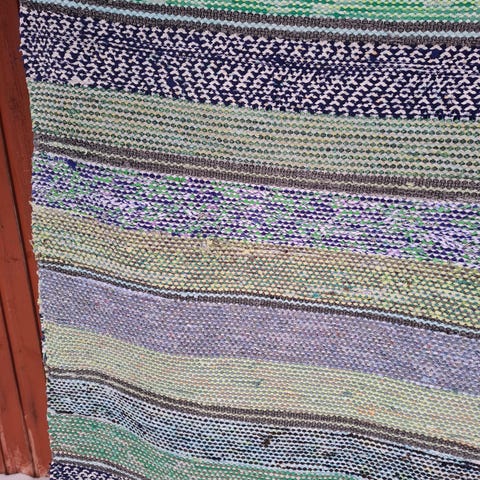 Vihreä matto alunperin Rustasta, mitat 68 cm x 225 cm