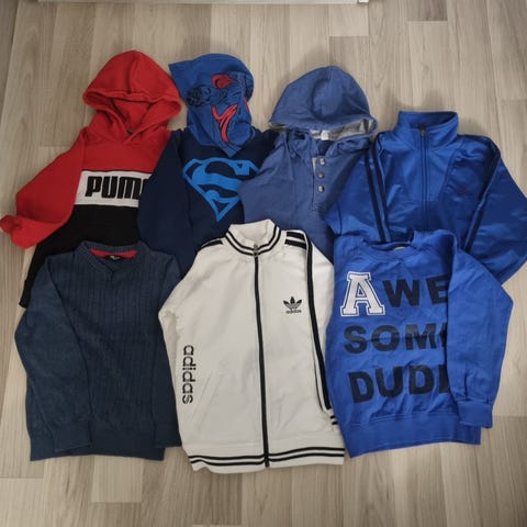 Kaikki hyvässä kunnossa olevia vaatteita eri merkeiltä.