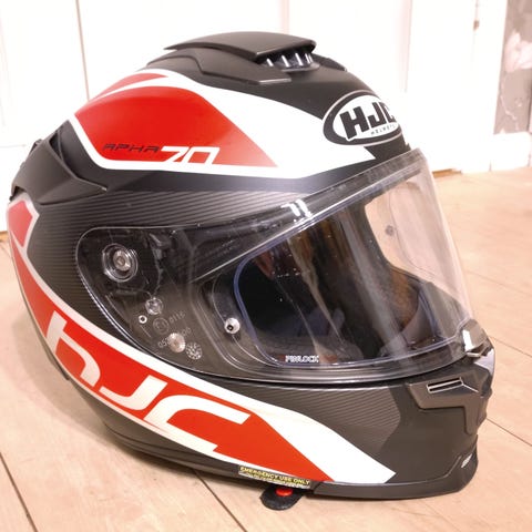 HJC moottoripyöräkypärä, väriltään valkoinen. Kypärässä kirkas visiiri ja sisäinen aurinkovisiiri. Mukana myös käyttämätön huurresuoja visiiriin.