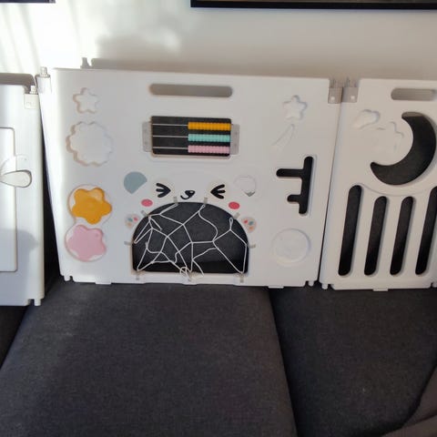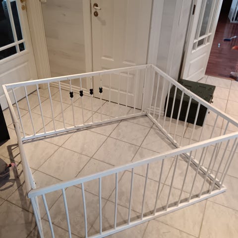 Retro pikkulasten leikkikehä myytävänä. Materiaali puuta. Päältä maalattu aikanaan. Ehjä. Taittuva malli.