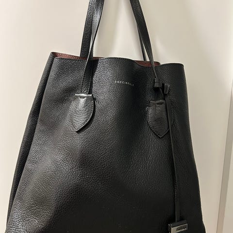 Myydään pieni nahkainen Coccinelle-merkkinen olkalaukku. Erittäin siisti kunto. Mitat noin: leveys 21 cm, korkeus 17, syvyys 8,5-9.