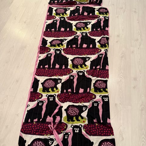 Unipussi 90x250 cm. Unipussissa on aluslakana, tyynyliina ja kevytpeite samassa. Kätevä reissussa. Unipussi menee pieneen tilaan. Ehjä, pieni tahra. Pesty tuoksuttomalla pesuaineella, ei eläimiä ja homeeton koti.