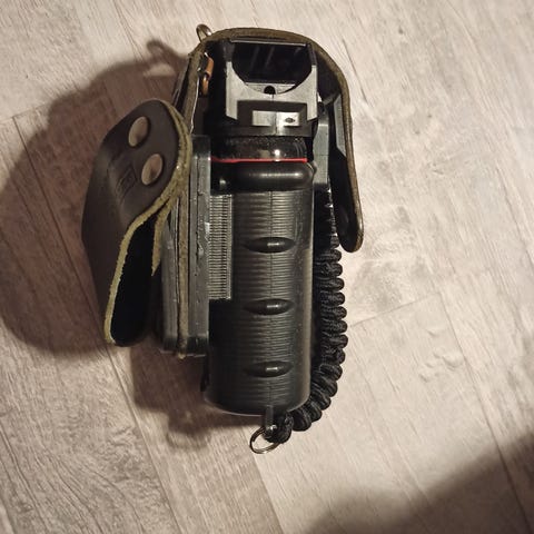 Aito bundes polizein käytössä oleva kaasusumutin kotelo.