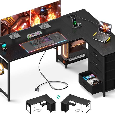 Kestävä ja vakaa rakenne: Kotitoimistoon tarkoitetussa pelipöydässämme on vankka rakenne, korkealaatuiset materiaalit ja tukeva metallirunko. Tämä takaa kestävyyden ja luotettavuuden jokapäiväisessä käytössä kotitoimistossa tai ammattimaisessa ympäristössä.. Kulmapöytä on varustettu sisäänrakennetuilla näyttöjalustoilla, jotka mahdollistavat näyttöjen optimaalisen sijoittelun ja edistävät siten ergonomista työskentelytapaa, joka vähentää niska- ja selkäkipuja.. Helppo koota: Vankan pelipöytämme ja näyttöjalustamme kokoaminen on helppoa helppojen ohjeiden ja mukana toimitettujen työkalujen ja ruuvien ansiosta. Joten voit nopeasti ja helposti perustaa uuden työtilasi.. L-muotoiset työpöytämme tarjoavat tilavan työpinnan, joka tarjoaa runsaasti tilaa tietokoneille, näytöille, tulostimille ja muille toimistolaitteille. Työskentele tehokkaasti ja mukavasti selkeässä ja hyvin järjestetyssä työtilassa.. Mitat kuvassa