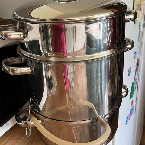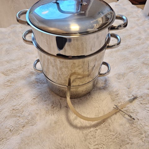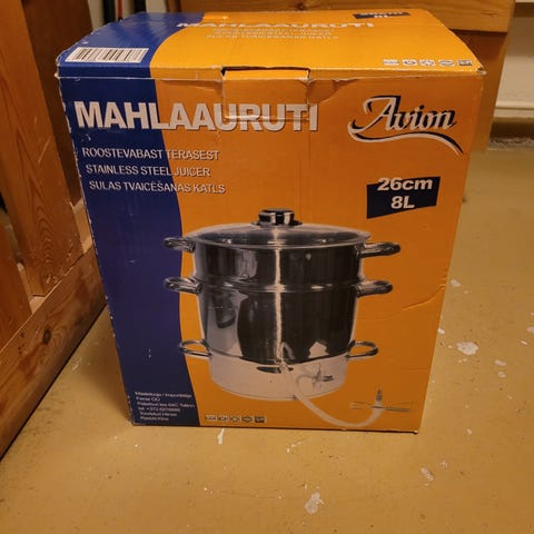 Kuvissa näkyvä Mehumaija kokonaisuus ja muutaman pullollisen verran punaviinimarjoja (poimittu kesä -25)