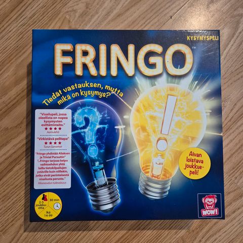 Myydään Fringo kysymyspeli. Soveltuu 14-99 v. Kaikki osat ja kortit tallessa.