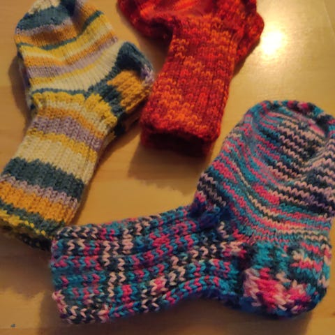 Myydään käsinneulotut lasten sukat, neulottu pehmeästä ja hengittävästä puuvillalangasta.