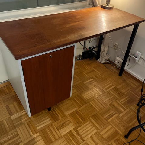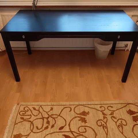 Myydään pöytä, ollut käytössä aiemmin sekä ruokapöytänä että työpöytänä. Puusepän tekemä, olen itse myös ostanut käytettynä. Käytön jälkeä on mutta ehjä! Pöytälevyn väri aivan haalean vihreä.