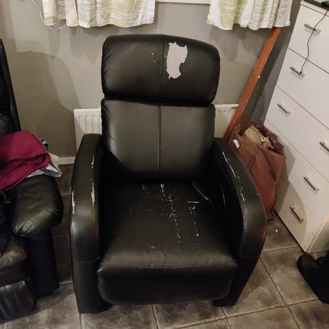 Kuvanmukainen keinonahkainen ruskea tuoli