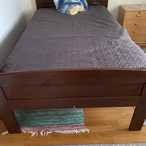 Täyspuinen, vankka sänky, johon mahtuu 80×200 cm patja. Puinen sälepohja. Jonkun verran käytön jälkiä löytyy, mutta kaikkiaan siisti ja ehjä. Sänky on äidilläni Kausalassa ja odottaa hakijaansa.