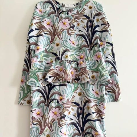 Upea merkki mekko. Yläosa ribbi. Kaunis kukkakuosi ja raita