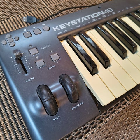 M-Audio Keystation 49 MK3 MIDI-koskettimisto, jossa on 49 täysikokoista kosketinta. Väri on musta valkoisin koskettimin. Sopii MIDI-ohjaukseen tietokoneen tai muun yhteensopivan laitteen kanssa. Laitteessa on ohjauspainikkeita ja säätimiä esimerkiksi oktaavansiirtoon ja kuljetuksen ohjaukseen. Mukana alkuperäinen pakkaus kuvan mukaisesti.