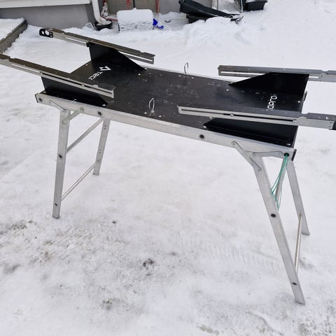 Ehjä suksienvoiteluteline. Valmistettu Suomessa.