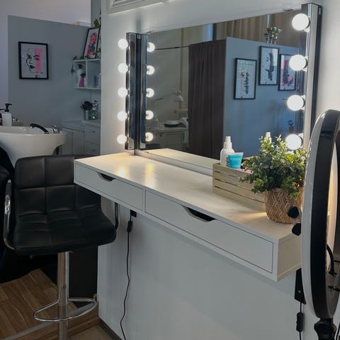 Peilin kunto erinomainen. Valot kiinnitetty peilin sivuun kaksipuoleisella teipillä, jotta niille ei tarvitse tehdä reikiä seinään. Suosittelen vaihtamaan uudet teipit tilalle.