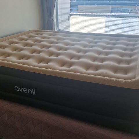 Kuvan mukainen ilmatäytteinen patja. Täyttyy ja tyhjenee sähköllä. Käytetty muutamia kertoja.