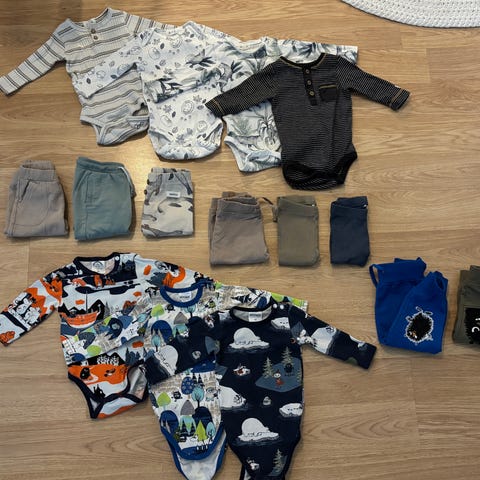 5 bodyä, 3 housut, 1 yöpuku