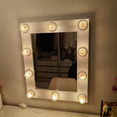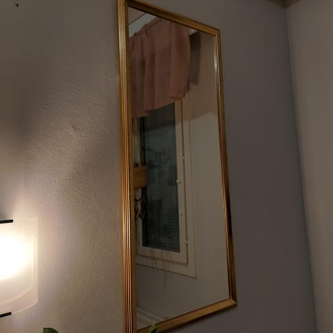 Peili, missä takana ja alla tasoa mihin laittaa tavaraa, saa seinään kiinni.