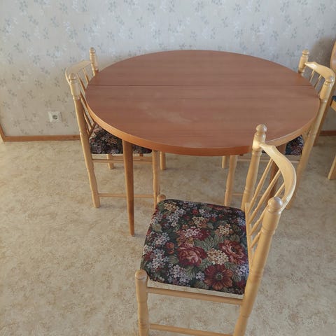 Kotimainen Laulumaan koivupuinen pöytä. Siinä on myös 50 cm jatkopala jos tilapäisesti tarvitsee lisäpaikkoja.