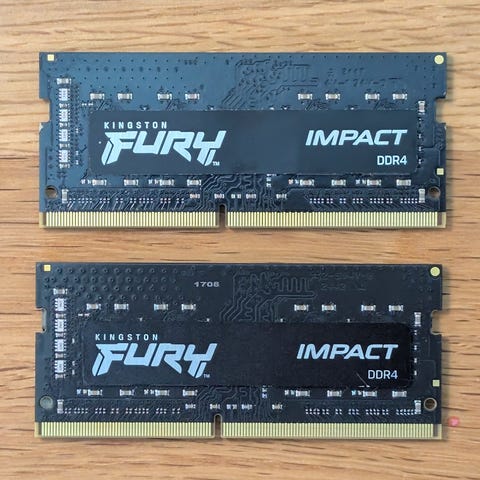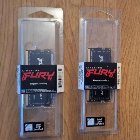 Kingston Fury Impact 16Gt RAM-muisti DDR5. Kannettaviin tietokoneisiin tarkoitettu SO-DIMM-muistikampa. Otettu uudesta koneesta pois kun korvattu suuremmilla muisteilla.