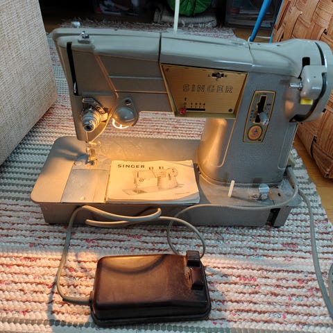 Kaunis ompelukone. Kaikki toimii. Vain lamppu palanut viime aikoina. Hän palveli samaa perhettä.