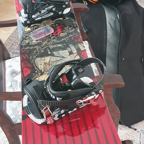 Myynnissä Burtonin lauta siteillä ja monot.