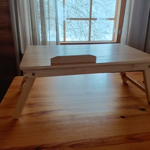 Myydään laudoista tehty taso, jonka pohjassa pyörät. Hyvä esim. ison kukan alle.