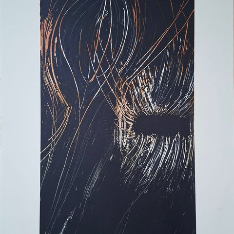 Teos edustaa modernia grafiikkaa, jossa on käytetty tummia sävyjä ja abstrakteja muotoja. Tyyli on pelkistetty ja keskittyy maisemallisiin elementteihin.
