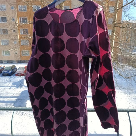 Ehjä ja tuoksuton marimekon vanhempaa mallisto paituli/ mekko. Mekko on muuten puhdas mutta huomioithan etupuolella nappien veressä olevan värjäytymän (viimeinen kuva)