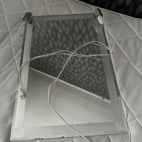 Myydään siistikuntoinen makrameesolmuilla koristeltu peili. Halkaisija 37 cm.