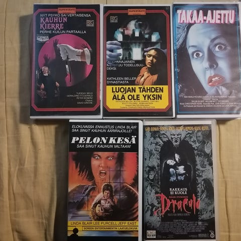 📍Video kasetit. Toimivina poistettu joskus käytöstä. Säilytetty pimeässä, komerossa sisällä.
