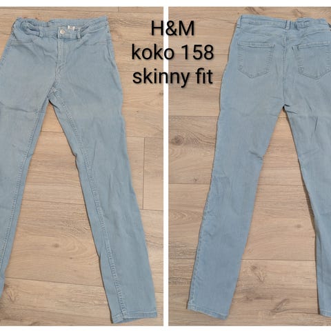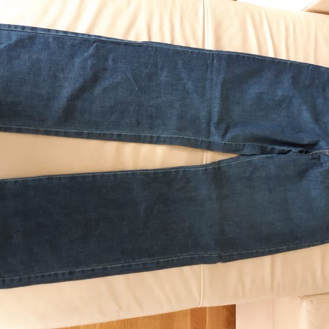 Lager 157:n uudet, skippy-malliset, tummansiniset farkut. Säädettävä vyötärö. Farkut on pesty käyttöönottoa varten, mutta olivatkin väärän kokoiset.
