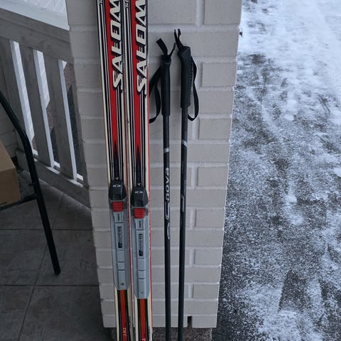 Tästä hyvät sukset, suksien pituus 150 cm ja monot lapselle. Salomon monojen koko on 35.5, 22 cm. Karhu Eagle Optigrip suksia ei tarvitse voidella. Aina sopivat ladulle keliin kuin keliin. Myynnissä Turussa. Mieluiten nouto. Eikun ladulle!