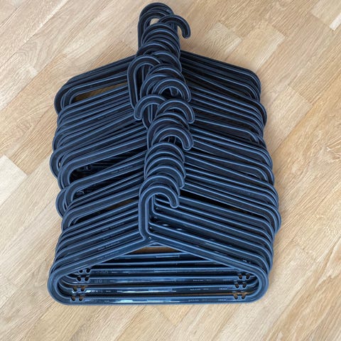 Kaksi kappaletta Jyskin uusia metallisia henkareita. Yhteensä 3 euroa. Postitan.