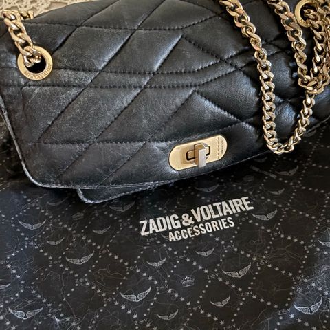 Zadig&Voltaire nahkainen laukku, musta väri, jossa upea teksturoitu ”käärmeennahka” pinta. Tämä on Z&V laukkujen isompi koko. Tätä upeaa mallia ei enään ole saatavilla. Mukana tulee kaksi erikokoista metalliketjua, joten laukkua voi käyttää olalla tai crossbodyna. Laukkua on käytetty mutta kunto on hyvä.