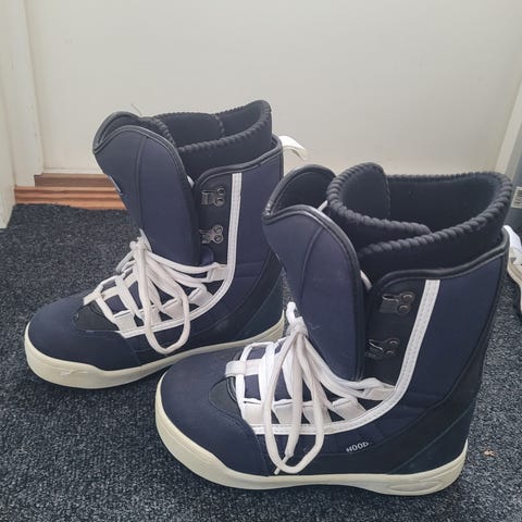 Näppärät monot lumilautailuun. Koko 39, sopii hyvin myös 38 kokoiselle jalalle. On tukevat ja mukavat jalassa. Nauhakiinnitys.