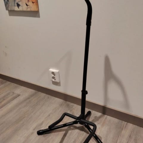Kitara teline musta. Kolmijalkainen malli, korkeutta voi säätää kiristysruuvilla. Soveltuu kitaratelineeksi.