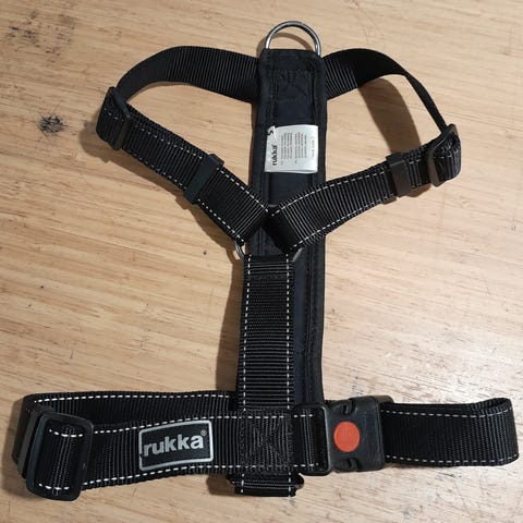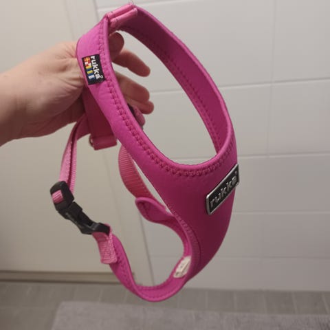 Keskikokoiselle koiralle. Rinnanympärys n 50-80cm, säädettävissä. Myös jalkalenkit säädettävissä. Pehmustettu rintakappale. Nouto Perttulasta.