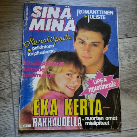 Sinä & Minä nuortenlehti 90-luvulta. Katsothan myös muut ilmoitukseni. Alle 5 euron ostokset voi noutaa ja vähintään 5euron ostokset voin myös postittaa matkahuollon pakettina.