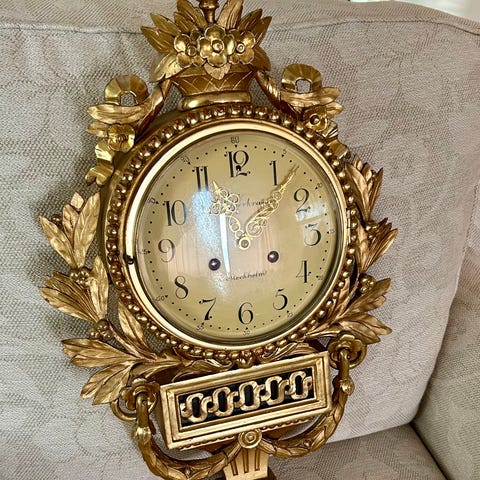 Kullattua pronssia oleva Ludvig XV-tyylinen pöytäkello, ei signeerattu. Tehty 1930-/40-luvulla. Erittäin hyvin toimiva ja kauniisti kilkattava kello. Täysin huollettu vastikään perinteisen helsinkiläisen Piekäisen kelloliikkeen kellosepän käsissä. Kellon huolto on kallista käsityötä siksi hinta tuntuu varmasti isolta mutta tälle kellolle ei siis tarvitse tehdä mitään. Kellon voi ostaa vain huollon hinnalla, kts. kuva huoltotodistuksesta.
