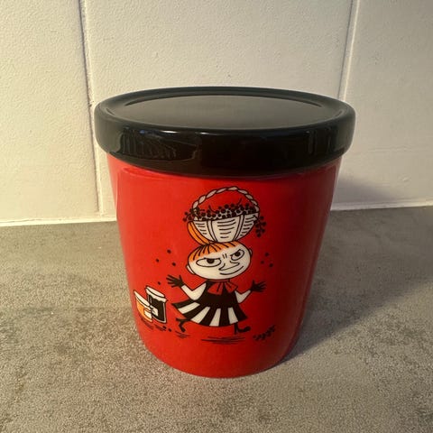 Arabia Muumi säilytyspurkit, kaksi muutto -sarjasta ja yksi alkuperää kunnioittaen-sarjasta. Ison purkin tilavuus 1,2l ja kahden muun 0,7l. Muutto purkeissa keraamiset kannet, ak:ssa puinen?